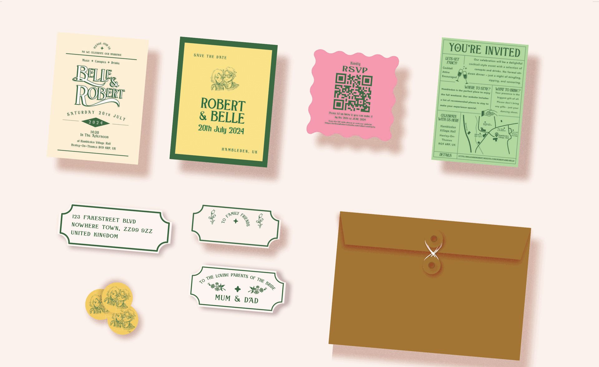 Designed and produced a full suite of bespoke stationery for a wedding celebration event, including invitations, signage and custom guest badges. The project focused on cohesive visual storytelling, refined typography, and high-quality print layout across both digital and physical formats. This work combined personal creative direction with practical event needs, resulting in a memorable and visually effective experience for guests.
